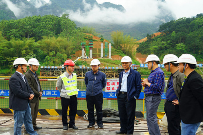 會后,李定倫率隊到都巴路控制性工程紅水河特大橋施工現場督導安全生產工作。